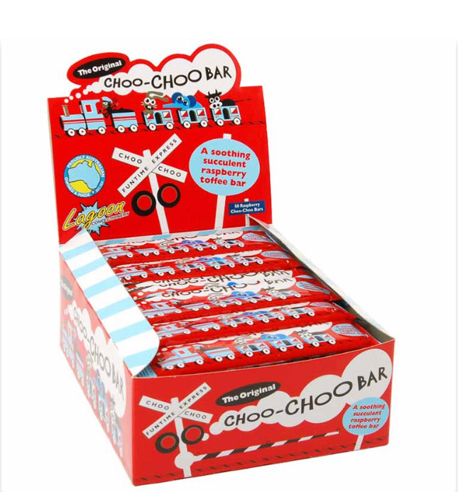 The original Raspberry Choo-Choo bar now made by the Australian owned and operated Lagoon confectionery. Remember going to the corner shop for these delicious raspberry toffee bar treats - yummmmm.