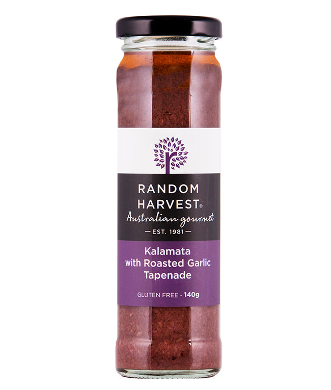 Rich olive spread made from the goodness of Kalamata olives and gently flavoured with roasted garlic, this tapenade is sure to delight your taste-buds! Generously spread kalamata & roasted garlic tapenade on a pizza base, foccacia or ciabbata roll, crumble fetta cheese on top, add some thinly sliced red onions, a drizzle of olive oil and top with a handful of spinach leaves. Bake until lightly golden brown.