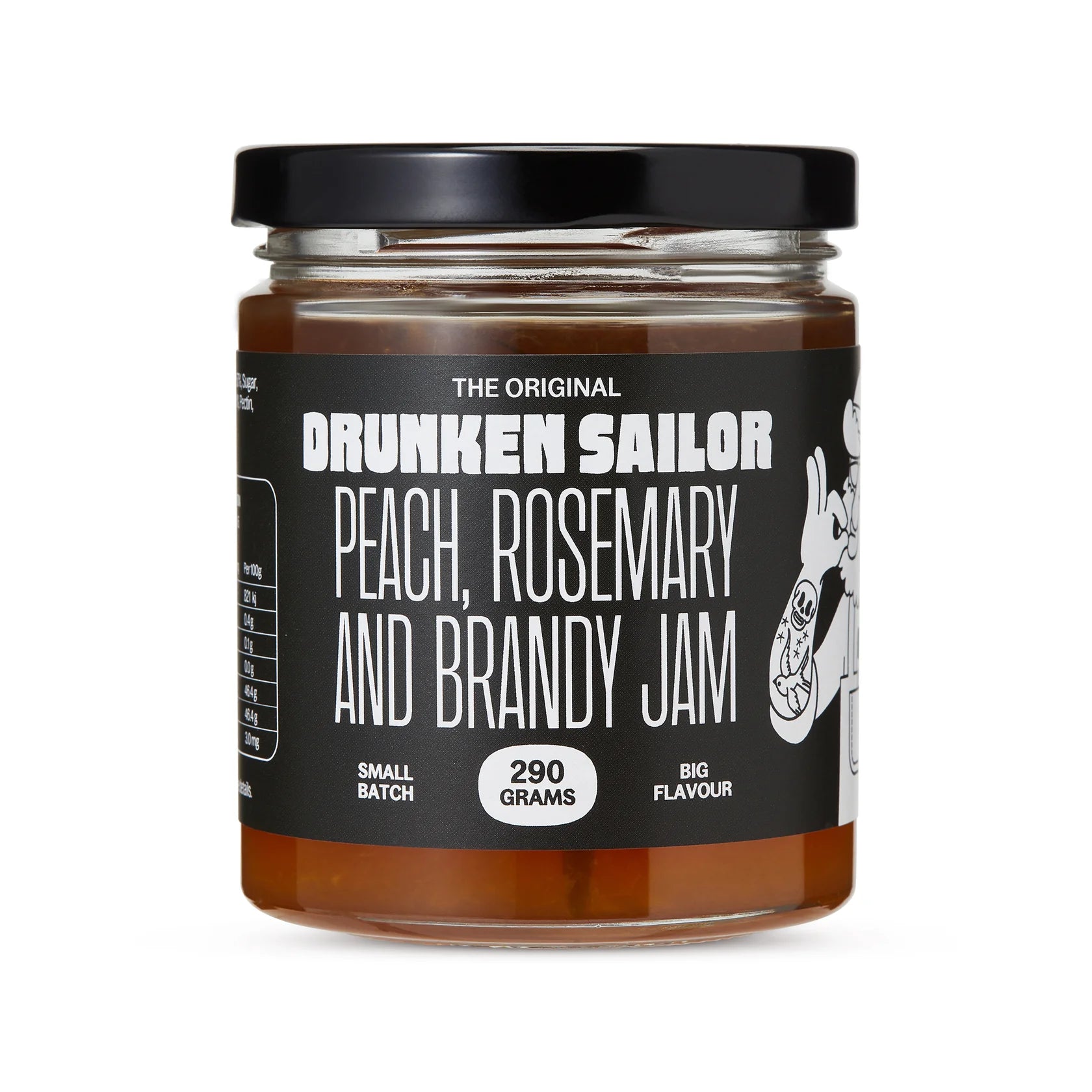 Peach 57%, Sugar, Rosemary 1%, Brandy 1%, Pectin, Citric Acid