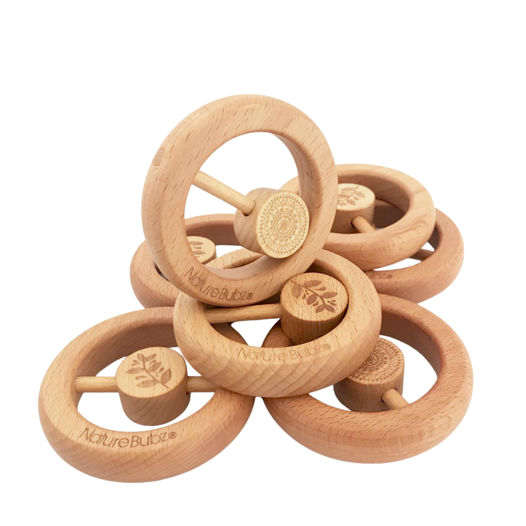 Our original engraved PHOENIX teething rattle is made from hard, impact resistant beech wood - ideal for when baby needs a hard surface to chew on to help the teeth break through the gum s