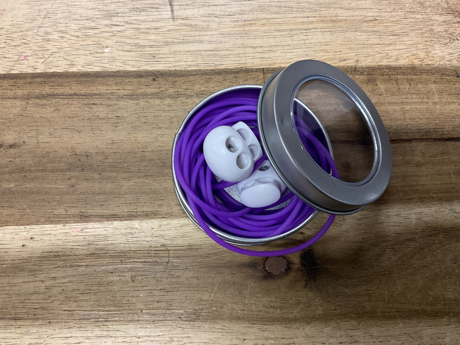 Comes in handy tin with lid for safe keeping.
